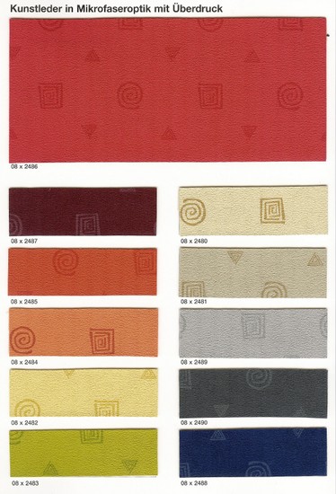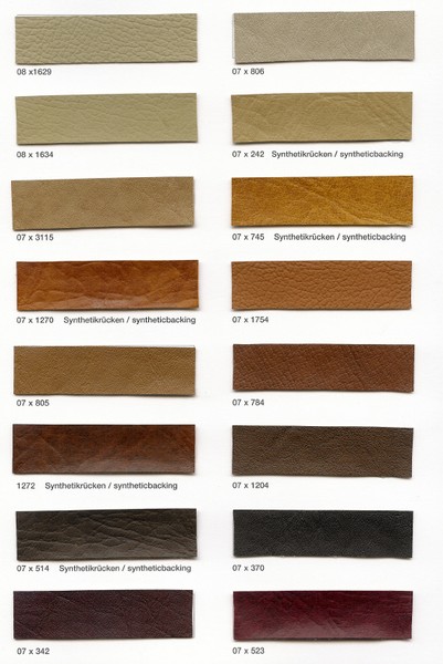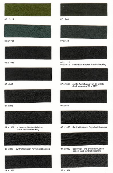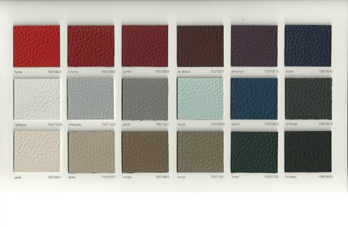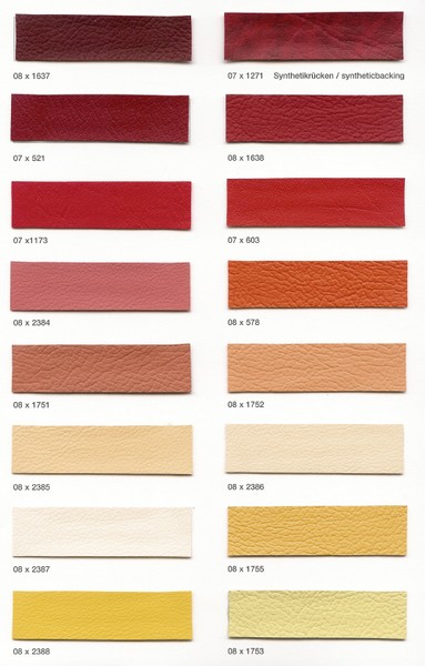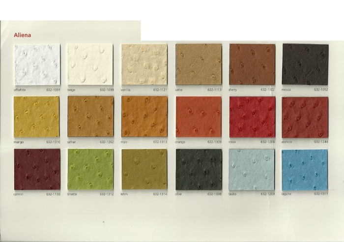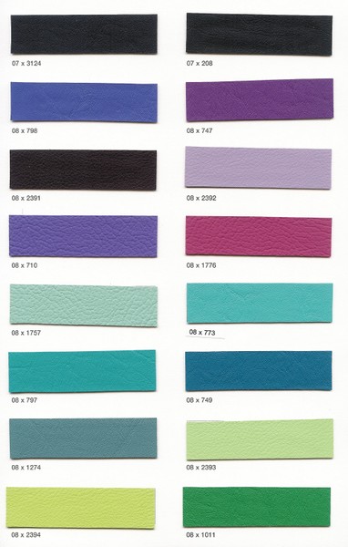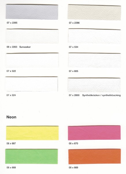 Wir können Kunstleder (SKAI, MAH-Tex, Winter-Creation uvm.) in verschiedener Qualität, einer riesigen Farbvielfalt, Perforationen und Prägungen (wie z.B. Schlangen-, Kroko- oder Straußenprägung) sowie mit Metalliceffekten liefern.